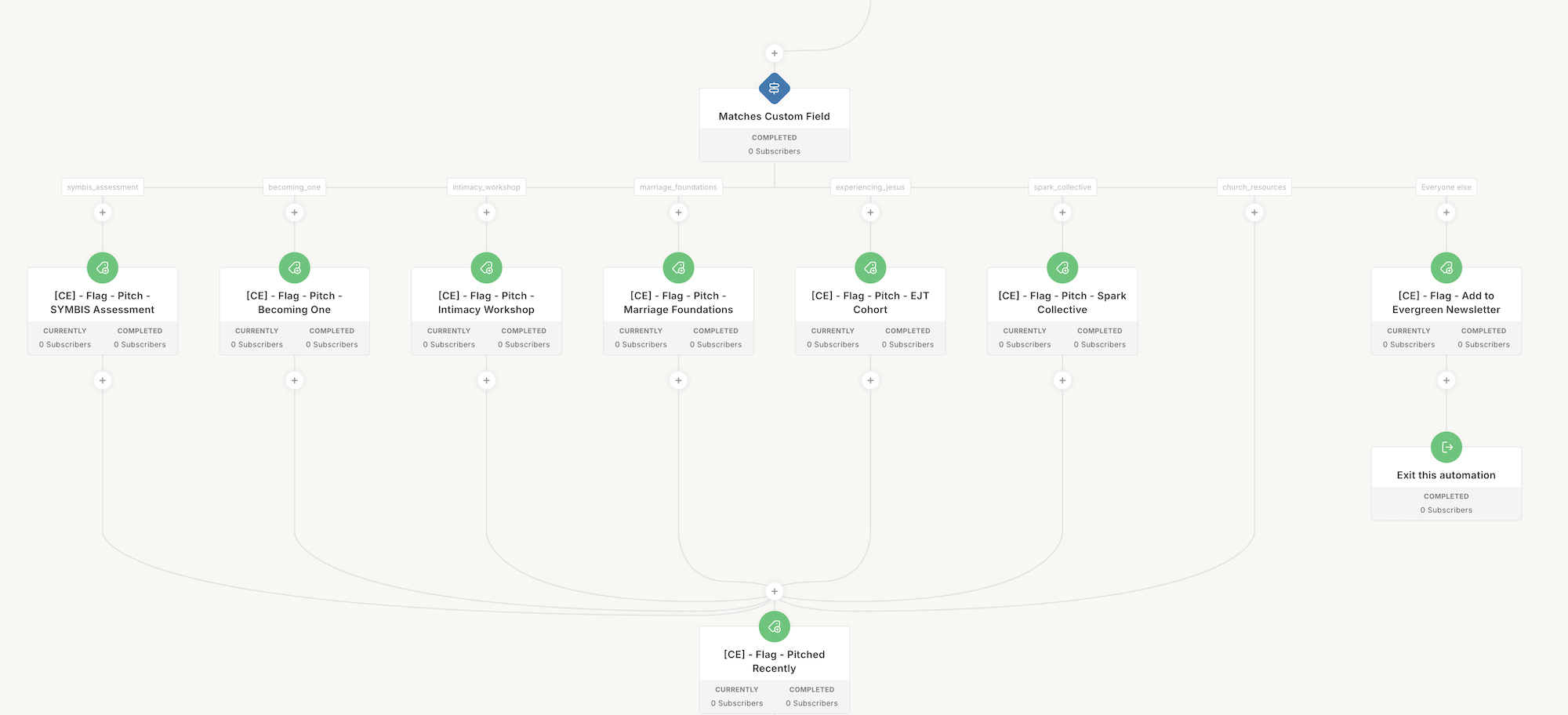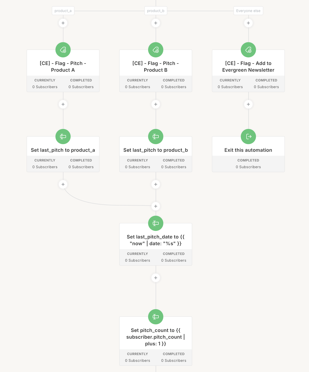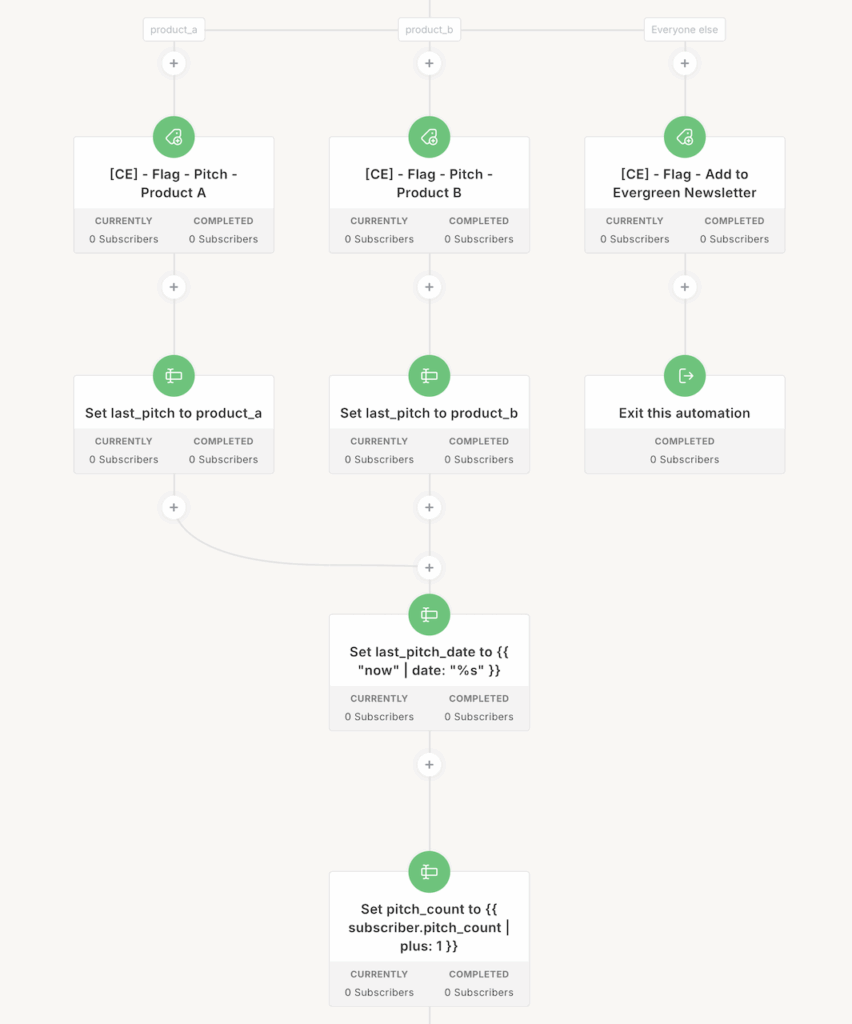 We remove them from their evergreen newsletter. We set the funnel location to “pitch product A” so we can check to see if they are in a pitch.