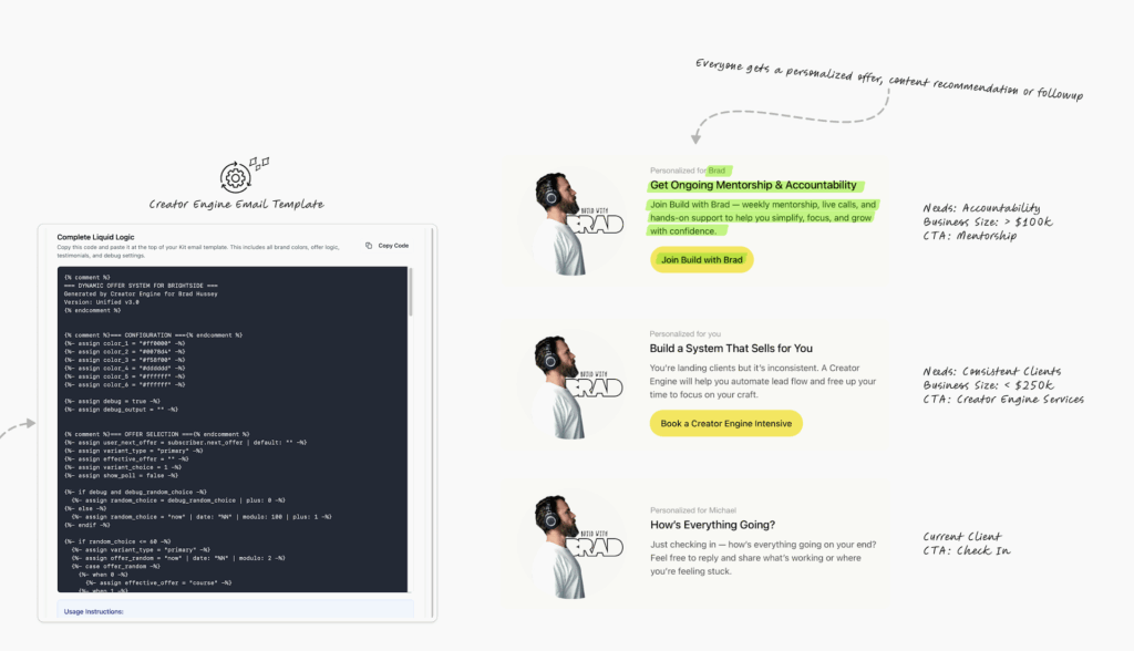 This is a detailed walkthrough of how I build these personalized email marketing systems using Kit and RightMessage. I’m pulling back the curtain to show you the level of strategy, planning, and intelligence that goes into smart email marketing automation across different industries, segments, and personalization tactics.