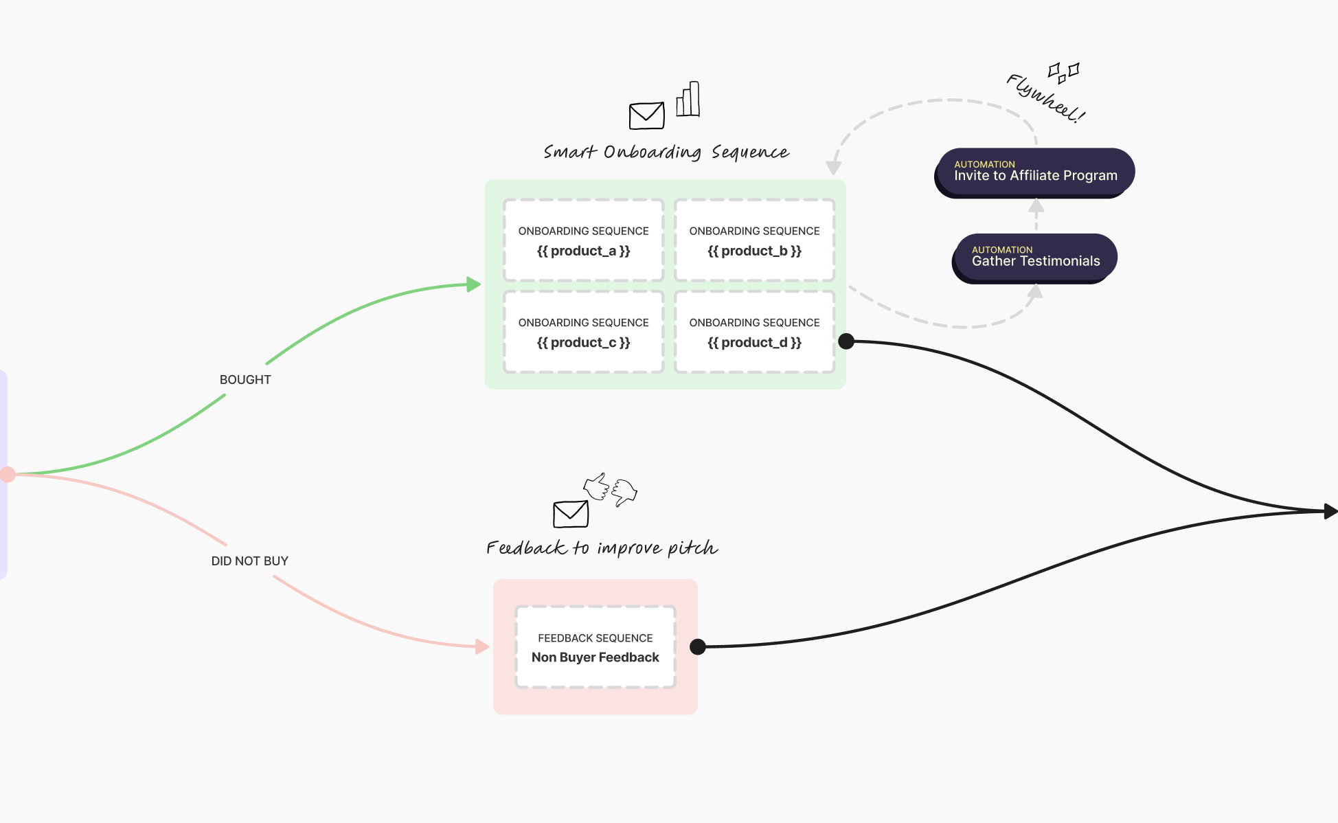 If they buy, they get onboarded for product A, B, C, or D.
