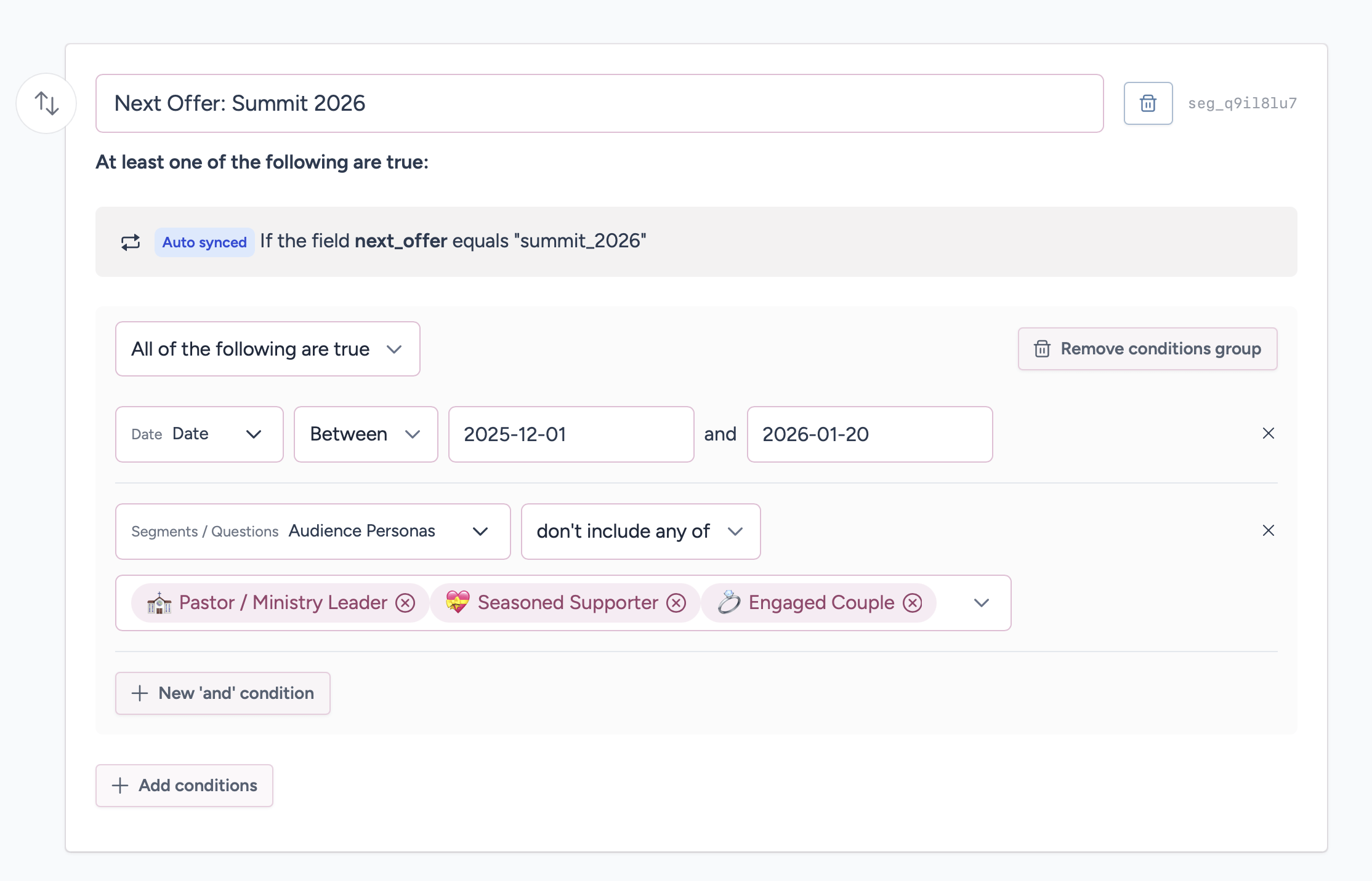 If we want to send a segment broadcast, we can check: “if it’s been greater than this many days since this timestamp, then we’re safe to send them a pitch.”