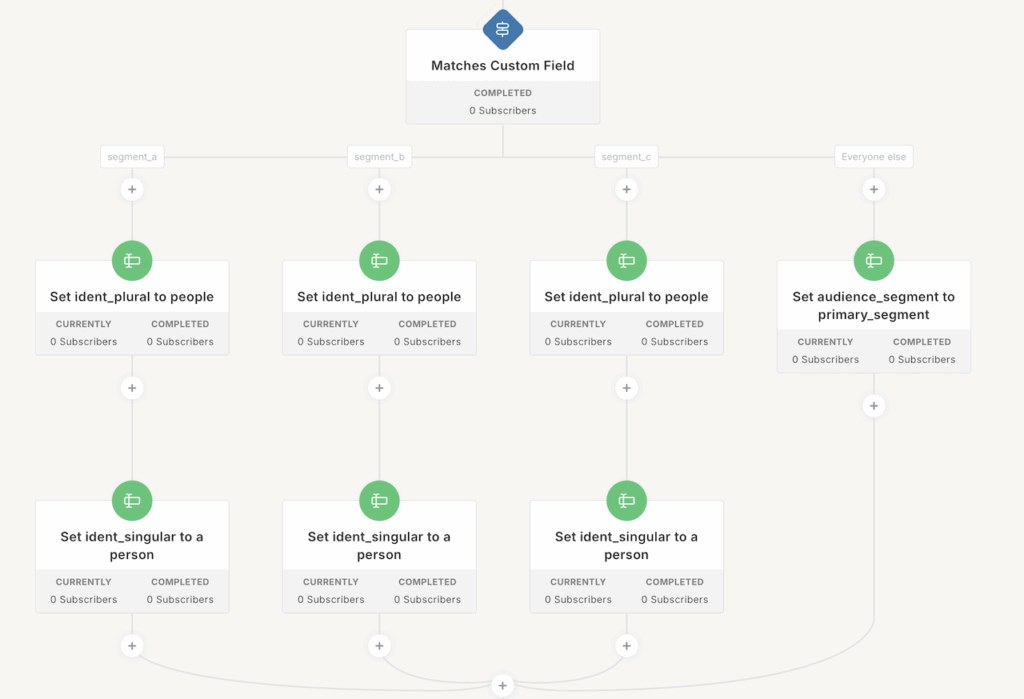 The next three emails personalize based on their segment.