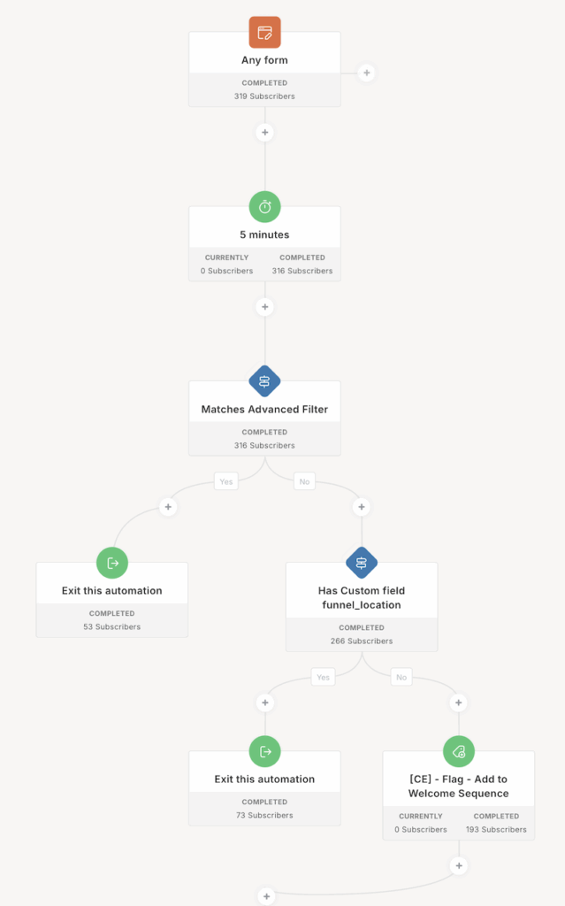The system fires when people join through any of your entry points: lead magnets, newsletter signups, webinar registrations, or opt-in forms.